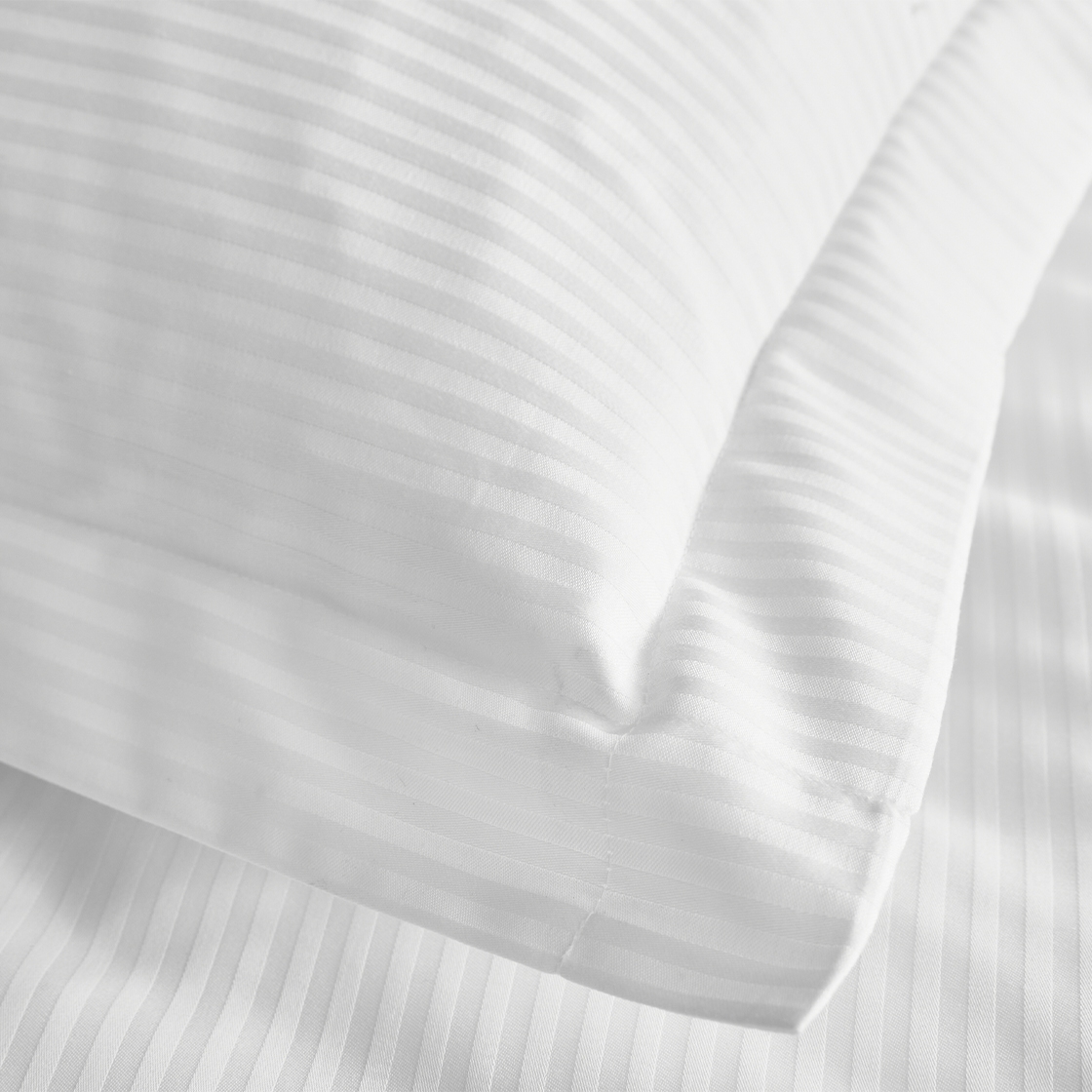 Avec ses fines rayures satinées et élégantes, le linge de lit Morphea se mariera prodigieusement bien à une chambre raffinée et lui confèrera un certain charme. Sa qualité de tissage et son toucher offrent un confort apprécié des clients les plus pointilleux.