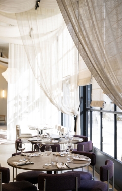 Nous sommes heureux d'avoir contribué à ce beau projet en réalisant les rideaux, voilages, stores bateaux et coussins décoratifs, de la confection à la pose. Les tissus non-feu de notre collection « Histoire Naturelle » donnent vie à cette atmosphère élégante et chaleureuse en apportant esthétisme et technicité.