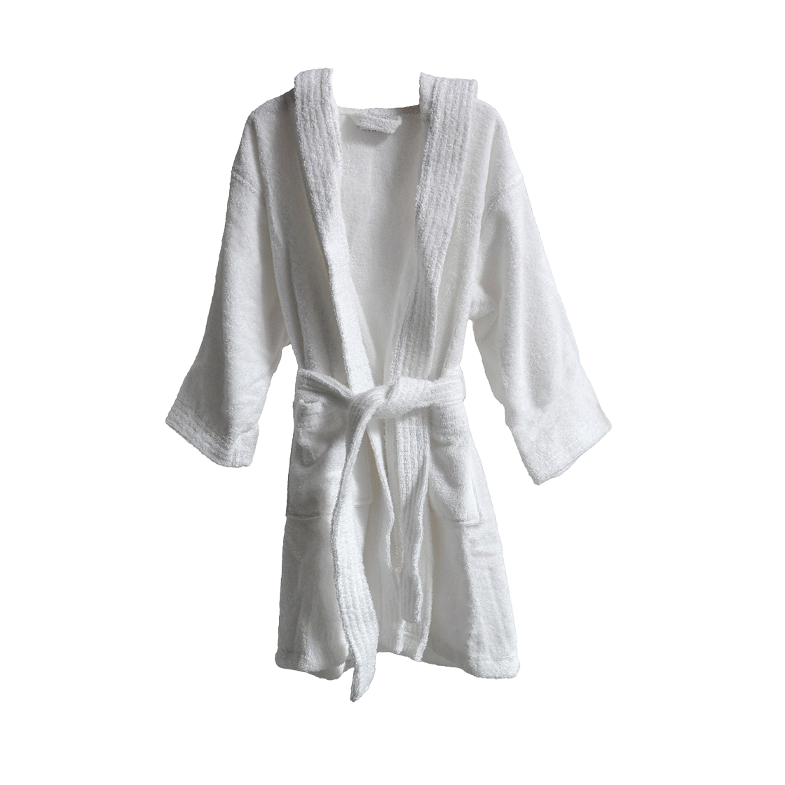 Offrez une expérience haut de gamme aux plus jeunes de vos clients avec le peignoir Club. En 100% coton blanc, il est disponible en deux tailles.