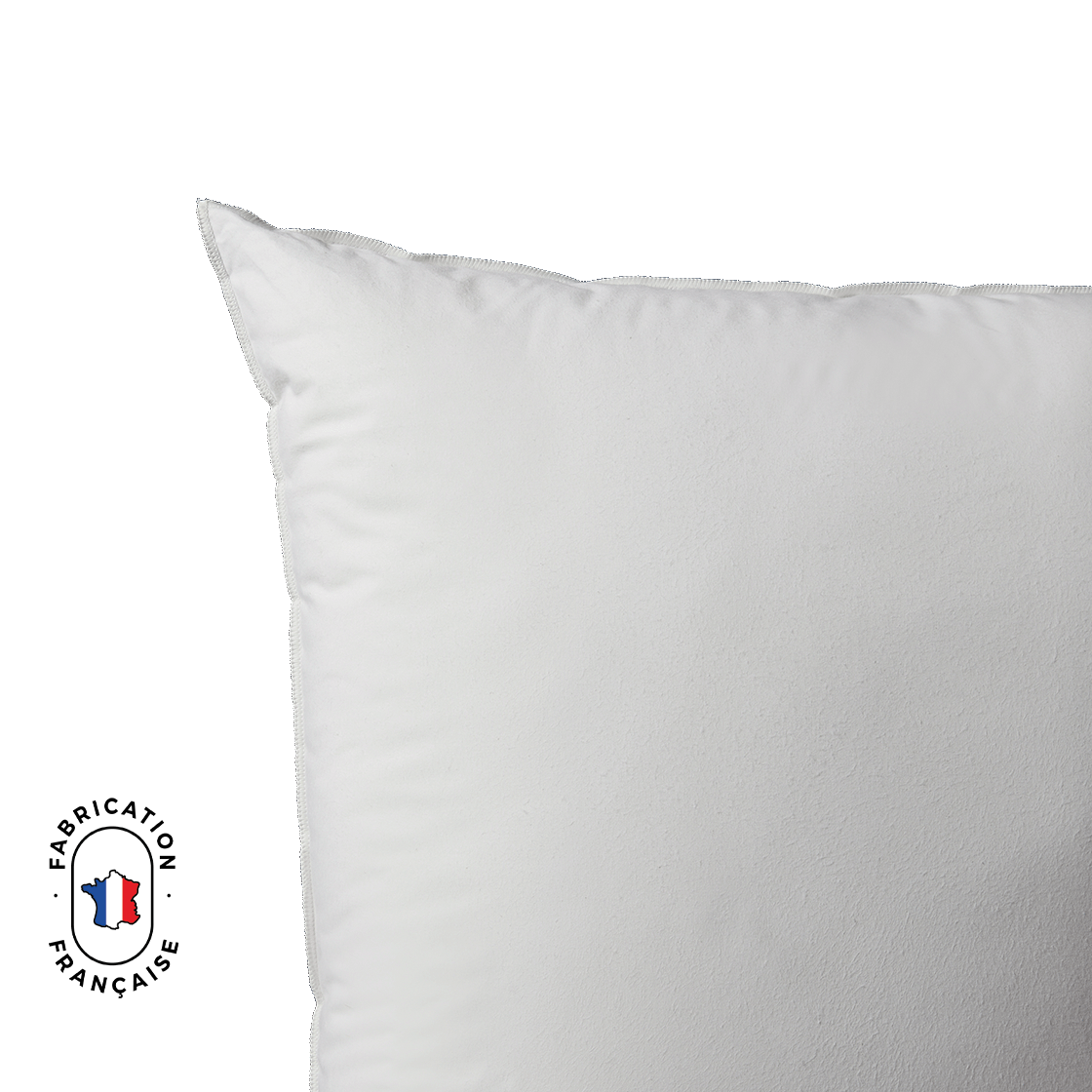 Bien garni (850 à 900g/m² de fibres), il conserve son gonflant grâce à sa forte capacité de résilience. Son enveloppe en duvet est en percale de coton ce qui lui confère une grande douceur.