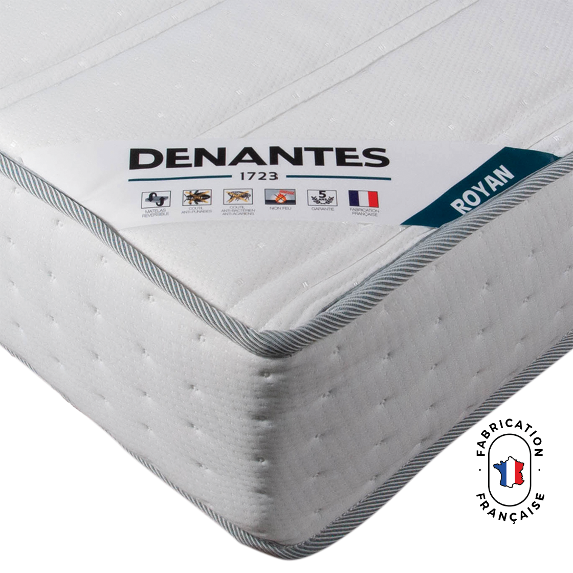 Conçu selon une technologie multizones, le matelas Royan tient compte de la morphologie de vos clients. Il est l’alliance parfaite entre soutien mi-ferme et confort enrobant. Votre corps repose sur 7 zones de maintien : Zones de confort – souple : épaules, bas du dos, pieds et jambes Zones de soutien - ferme : tête, cuisses et reins Tous les ressorts du matelas Royan sont enveloppés individuellement dans un sachet (980 ressorts sur un matelas 160x200 cm). Cela permet d’isoler chaque ressort de ses voisins. Ainsi, les mouvements d’une personne ne sont pas répercutés sur le reste du matelas ce qui permet de passer des nuits au calme, sans être dérangé par les mouvements de l’autre. Notre matelas Royan a été spécialement développé pour répondre aux besoins de nos clients hôteliers. Conçu et fabriqué dans le nord de la France, ce matelas à ressorts est durable, confortable et fait preuve d'un excellent rapport qualité/prix.