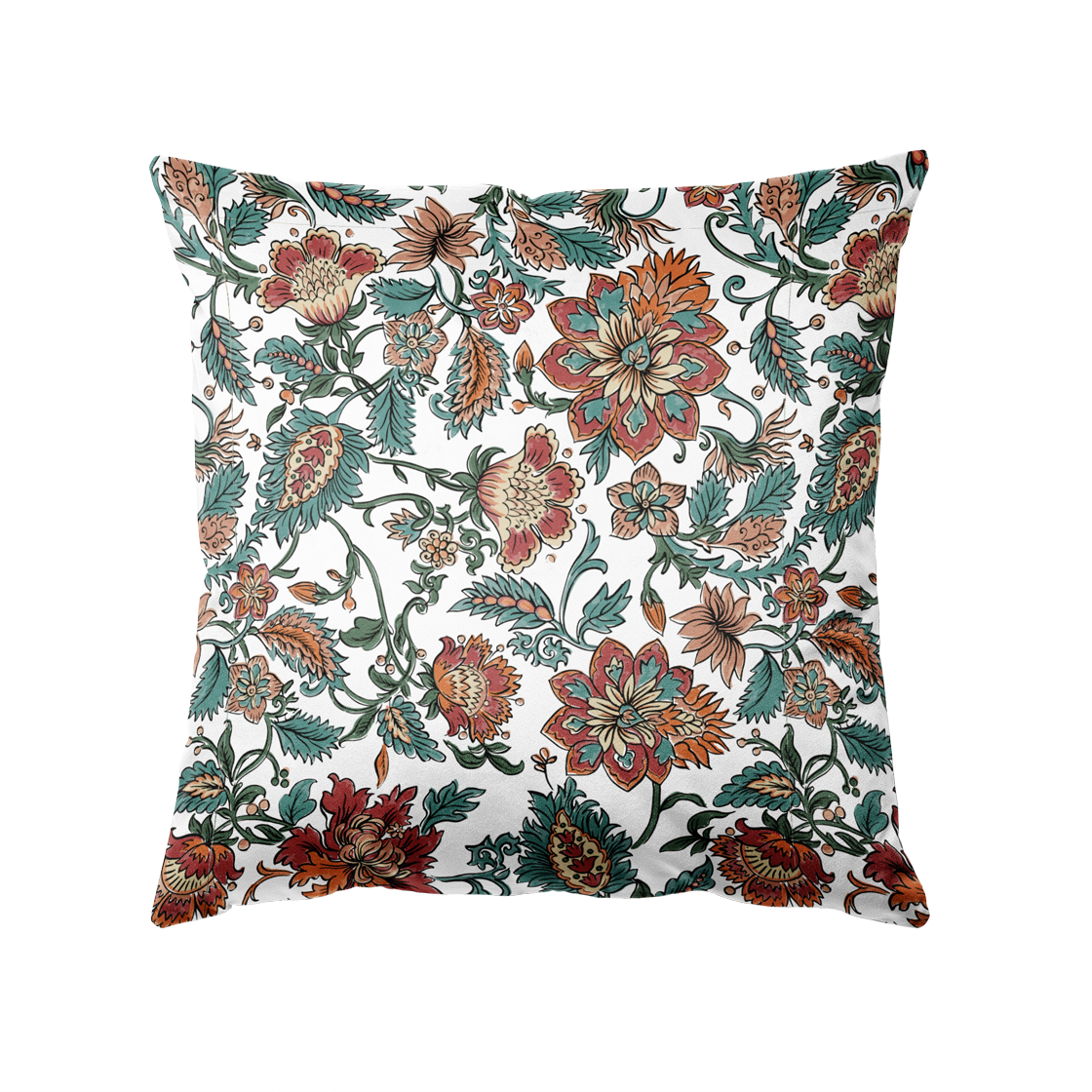 Avec son motif d'inspiration végétale imprimé double-face, le coussin India a des couleurs intenses et profondes.