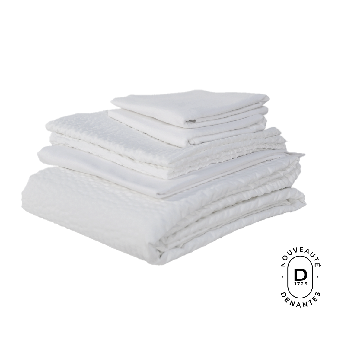 Le linge de lit Luna est confectionné dans une toile blanche en polycoton et élasthane qui lui confère un magnifique aspect gaufré très original.