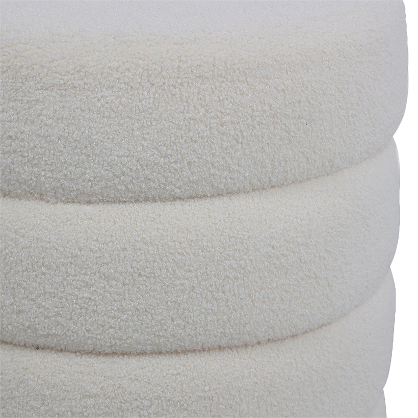 Le pouf Polo, avec son revêtement en tissu bouclette ultra doux et sa forme cylindrique originale apporte une touche cosy et moderne à tous vos espaces. Son assise moelleuse et ses surpiqures qui donne un effet capitonné invite à la détente tout en créant une ambiance chaleureuse, idéale en siège d’appoint dans un salon, un lounge ou une chambre. Ce pouf est disponible en 2 coloris.