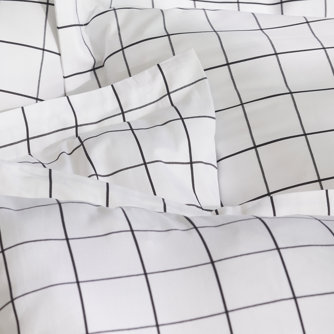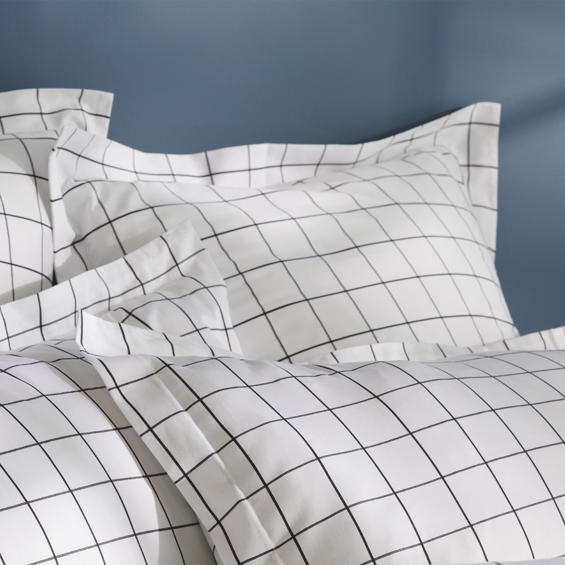 Vous souhaitez moderniser les chambres de votre établissement ? Pourquoi ne pas opter pour un nouveau linge de lit sobre avec une petite touche de fantaisie ? Le motif quadrillé noir de notre linge de lit Atlas est obtenu grâce à un jeu de tissage. Il n'est donc pas simplement imprimé mais tissé, ce qui offre une réelle plus-value visuelle et tactile ! C'est également un avantage à l'entretien, le motif ne s'estompe pas car c'est le fil qui est teinté de noir et non pas une simple impression numérique. Sa composition en mélange de coton peigné (80%) et polyester (20%) permet d'obtenir un linge de lit respirant et agréable au toucher. Il est également possible de l'entretenir de manière industrielle avec un lavage à haute température (60°). En résumé, c'est le linge de lit parfait pour un boutique hôtel ou un établissement de charme qui souhaite apporter une touche de décoration dans ses chambres.